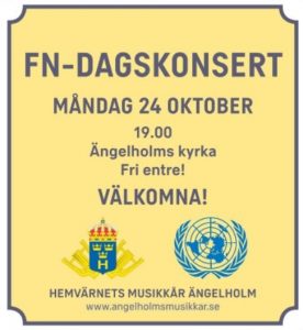 På FN-dagen 24/10 kl 19:00 kan ni återigen får lyssna på musikkåren. Konserten kommer att hållas i Ängelholms kyrka. Ett varierat program med allt från filmmusik till storbandslåtar med ”Millerstuk” utlovas. Även ett underbart flöjtsolo samt en stämningsfull avslutning finns med på programmet. Varm välkomna!